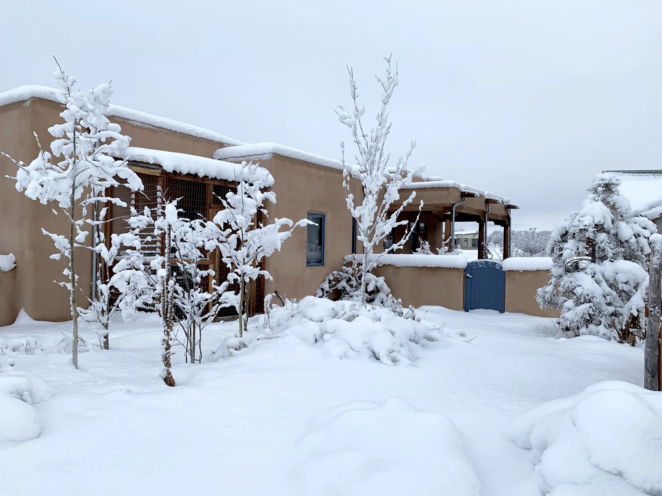 Valverde Commons, in the heart of Taos, New Mexico, is a senior (55+) cohousing community of 28 private home sites designed and operated by its residents. We are mindful of climate change, and our homes are built with energy efficiency, water-saving features, and harmony with the local environment. Our homes encircle the Commons, an open, central area rich in native plantings bordered by a circular path connecting neighbors who love to take advantage of opportunities to socialize.